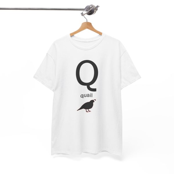 Introducing the perfect tee for proud parents as well as teachers—featuring a bold, large “Q” with the word “quail” just beneath it along with a picture of an actual quail! Available in classic black or white, this stylish yet meaningful shirt is more than just a fashion statement. While holding a newborn, you can begin teaching them the alphabet in a fun, visual way. Whether you’re at home or at an early childhood facility, this tee becomes an easy, interactive tool to foster early learning moments with a little one. Make it your go-to choice for comfort, style, and nurturing a baby’s development!